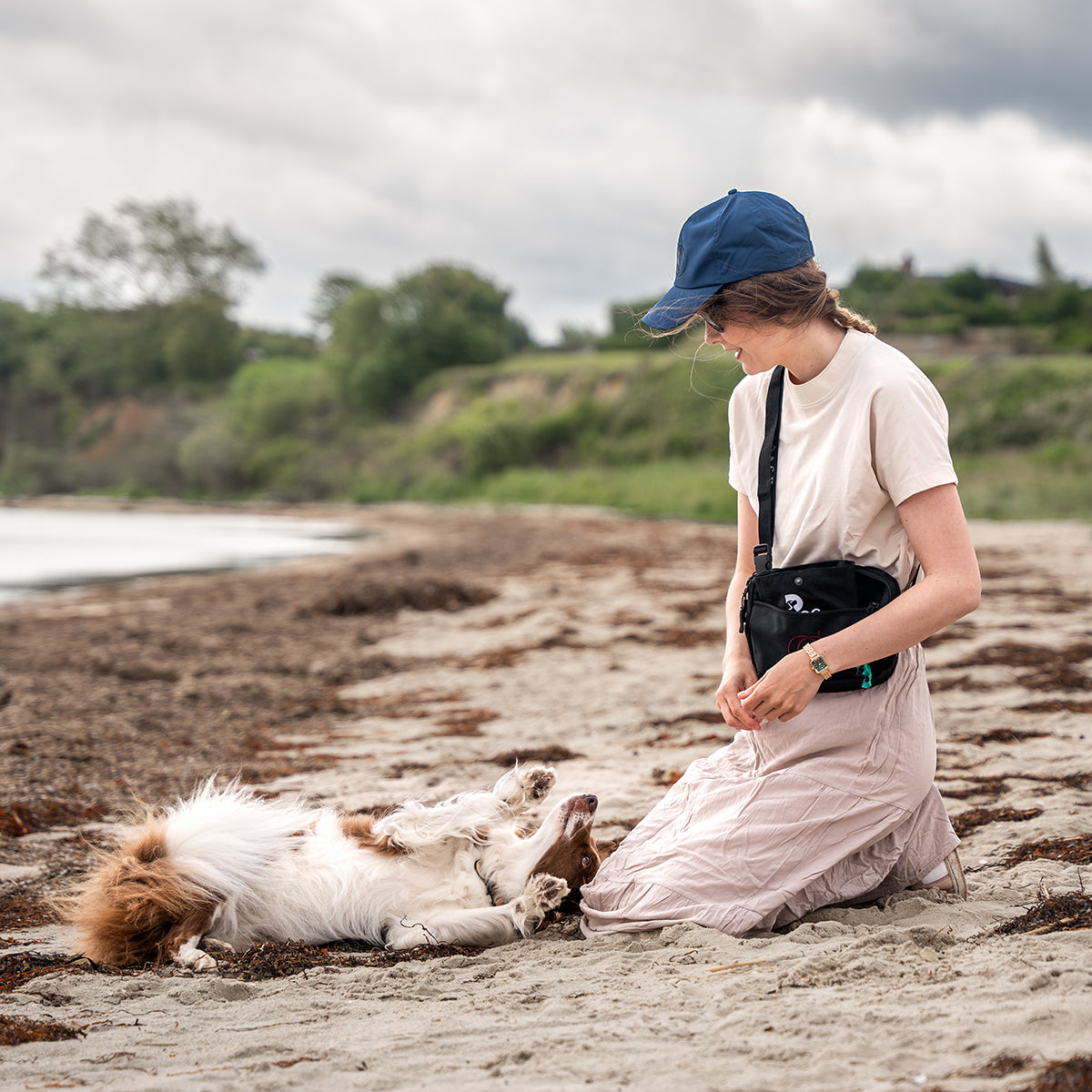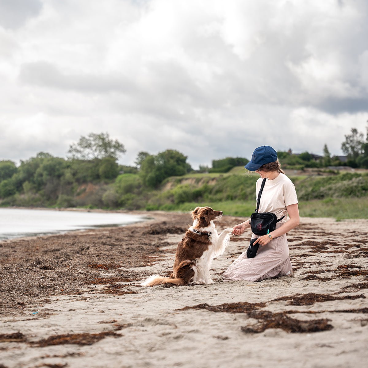 Unsere praktische und multifunktionale Gürteltasche mit Platz für Leckerlis, einem integrierten Kotbeutelspender und einem Kordelzug, damit du nicht mit dem Beutel in der Hand herumlaufen musst, bis du den nächsten Mülleimer erreichst.